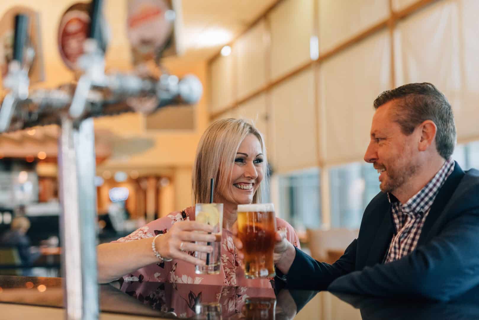 Our Bar area is filled with sun during the day. Enjoy comfortable lounge seating in our atrium-style indoor space, or get some fresh air on the outdoor terrace.